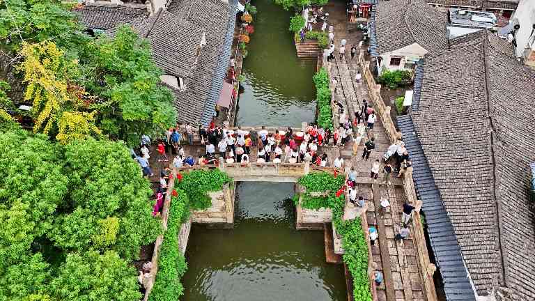 八字桥始建于南宋嘉泰年间,两桥相对斜出,状如八字,故而得名。它连接着沿河居民的烟火日常,被誉为中国古代的“立交桥”。