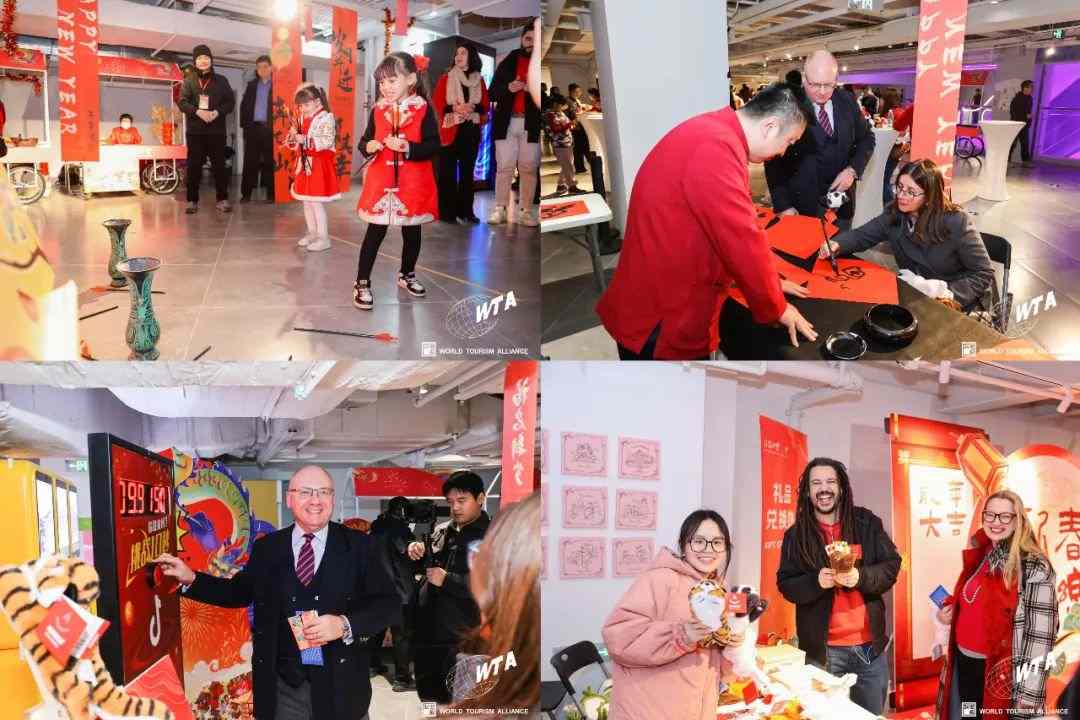除正式仪式部分外,此次招待会还安排了模拟飞行、微缩中国庙会和非遗展示等环节,在现代科技和传统文化共同营造的氛围中,与会的中外嘉宾“飞越”了中国百余个知名旅游景点,体验了中国传统新春佳节的民风民俗。